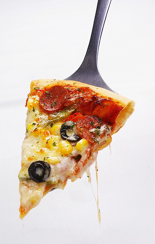 披萨酱:韩国辣椒酱、起司条、素腊肠、蘑菇片、青红椒丝、粟米粒、黑橄榄