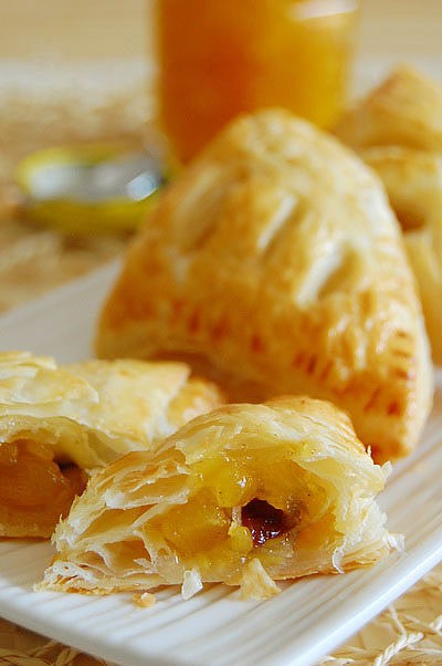 【用料】市售飞饼皮2片、菠萝果酱2大勺、苹果盯葡萄干适量玉米淀粉1小勺、水少许
