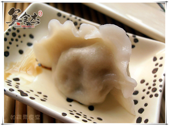 第9步包成饺子,按小窍门的方法捏漂亮些,入开水锅,转中火,轻勤搅动煮至鼓起即熟