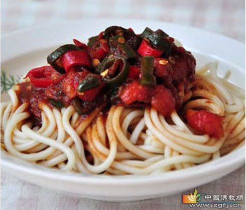 4. 加入去皮的番茄丁,盐,继续翻炒。炒至一半的番茄丁化成汁即可起锅。