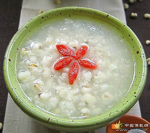 原料:糯米1杯(量米杯)、麦片1杯、百合10克、枸杞10克、红枣8粒、香菇3朵、盐适量