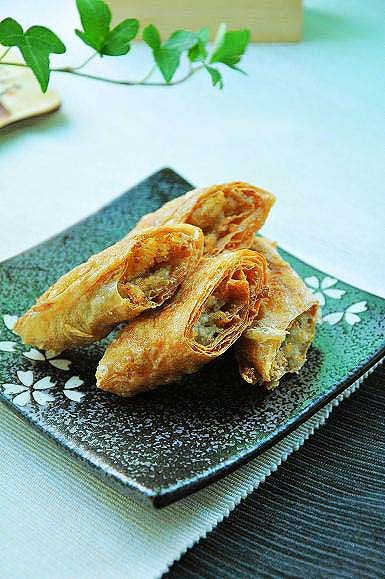 原料:腐皮(油豆皮)、莲藕、盐、白胡椒粉、水淀粉、橄榄油