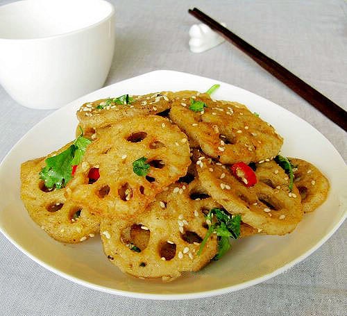 油温6成热,将藕片入油锅中火煎炸至微黄捞出;