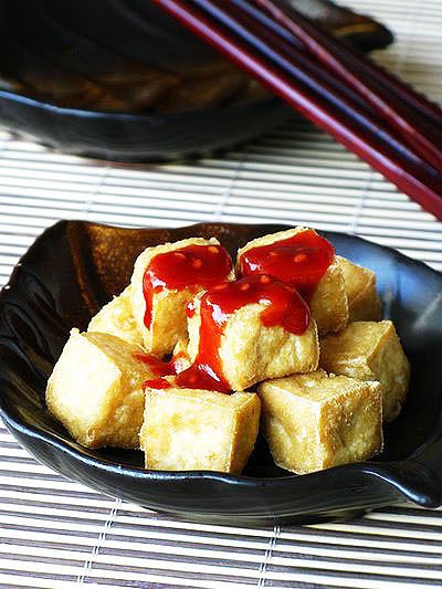 材料:臭豆腐、酸甜辣椒酱(或其他各种口味蘸酱)。