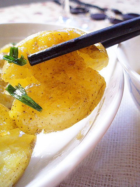 2、电饭煲煮饭的时候,顺便蒸上土豆,先撒些盐,入味一些~~
