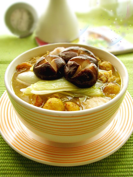 【原材料】娃娃菜(大白菜也可)1棵、鲜香菇5朵、芋艿(芋头)5个、板栗20粒、独蒜1个。