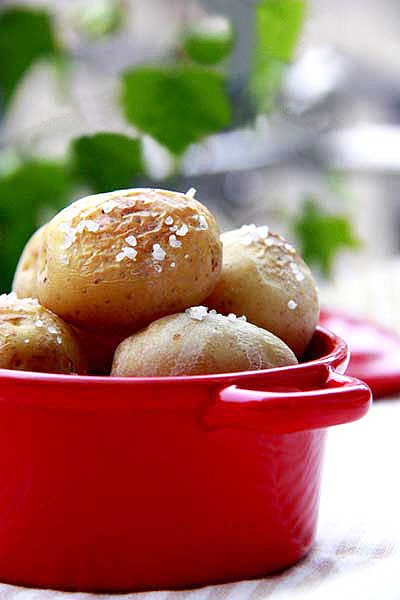 3,将土豆整齐的 码在盐上,不要碰到锅底。可以多加点盐整个盖住土豆。