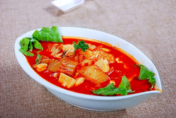 食材:韩国泡菜、内脂豆腐、蘑菇、素虾仁