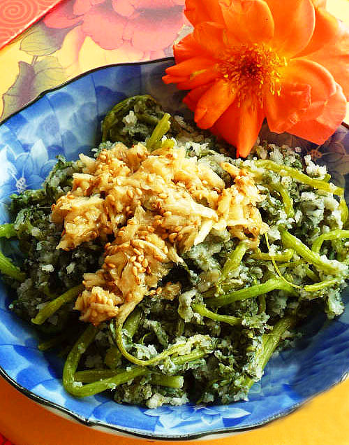 调料:熟芝麻1/4匙 芝麻油、盐、醋适量