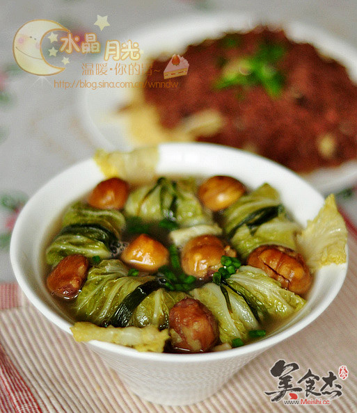 第6步每个娃娃菜叶视大小,包入一颗完整的板栗,或者一些碎了的板栗