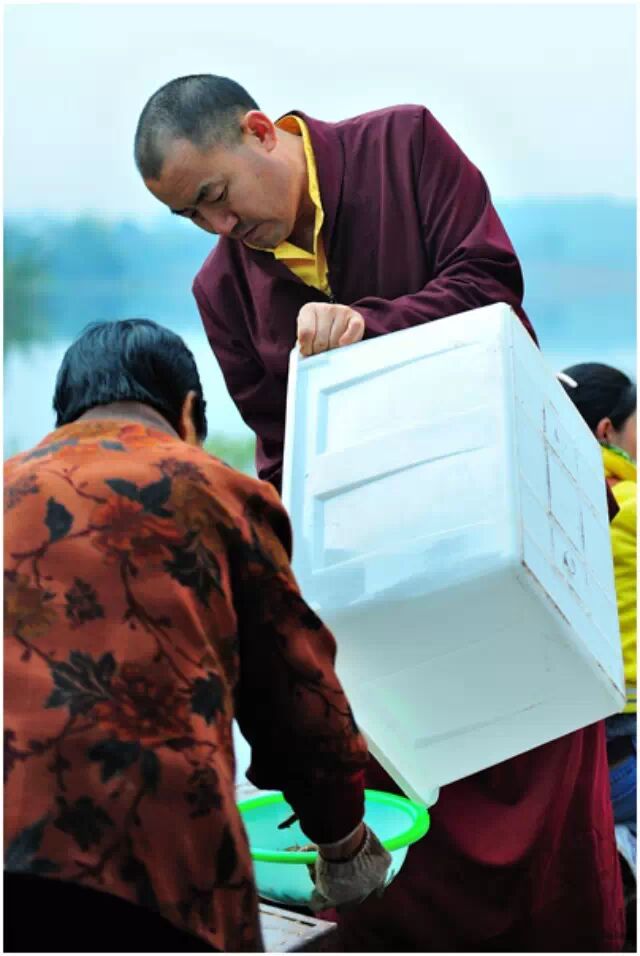 还有一点,遇到一些即将被杀害的众生,我们用钱买下,然后把它放生,这也是有必要的。并不是说慈城罗珠堪布正在百日放生,我们只要把钱交给他,自己完完全全就不用管了,也不是这个意思。慈诚罗珠堪布他老人家只是在一个地方放生,如果说世界各地的人都能在每个地方放生,众生得到救护的机率将会大大增加。我们在放生过程中,不断地增长慈悲,不断地和这些众生结善缘,也会有不同的感受。我们参加买生,在车上搬上来搬下去,自己的身体要去劳作。如果只是打款随喜,身体的劳作就没有了。至于放生的环境是否成熟,虽然也有一定的关系。但是不管怎么样,自己在这个过程中,如果能够培养慈悲心,遇到需要放生的众生,即使环境不成熟,但是自己通过善心,买了之后,念诵仪轨,放生的话,对于自他都是有利的。
