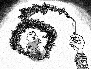 问:顶礼法师!我的周围永远有家人吸烟,请问我该怎么远离他们?如何保护自己不被烟气熏染?