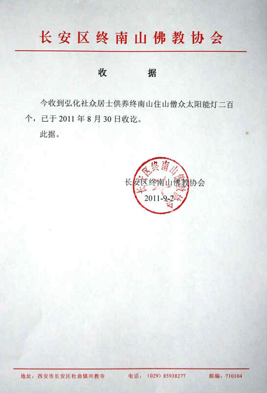 终南山供灯收据: