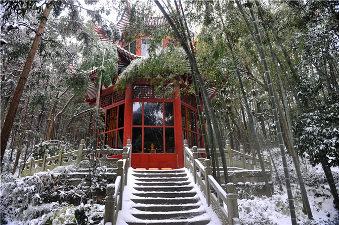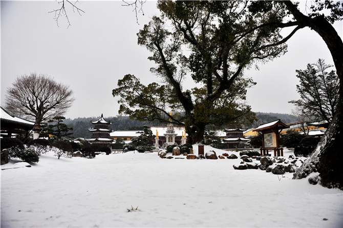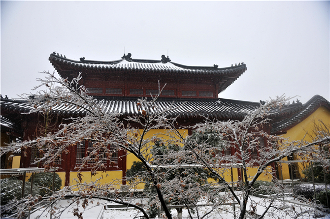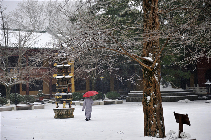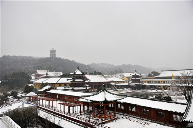 一场大雪袭卷了大半个中国,庐山脚下的净土宗祖庭,也在持续数日的白雪飘飘后,奇妙变身。