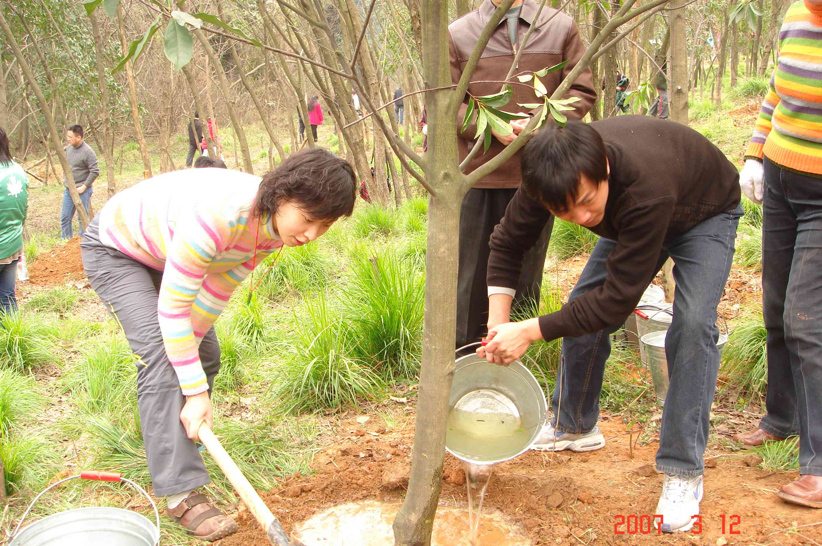佛教导航 武汉讯 3月11日武汉伽兰家居佛友一行20余人,踏着春的脚步来到马鞍山森林公园植树。大家挖坑的、抬树的、、填土的、浇水的、忙得不亦乐乎,让九颗三米多长的树在大家的欢喜雀跃中树立在秀美的太渔山峦 。