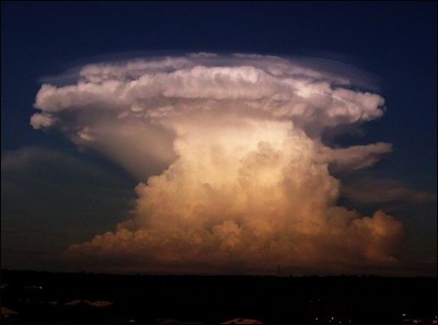 这个傍晚拍摄的云朵照片似乎很容易让人联想起核爆炸形成的“蘑菇云”景观。不过请不用担心,这个云朵里有的只是水蒸气和空气尘埃,并没有“蘑菇云”里散发出的放射性物质。