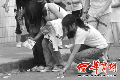 “我们边捡着,那些散发传单的人边往行人手里硬塞着,还冲我们笑。”西安文理学院06级艺术设计系学生焦志丹表示,这边刚捡完,那边小传单就跟一阵风似的又落满了街道。