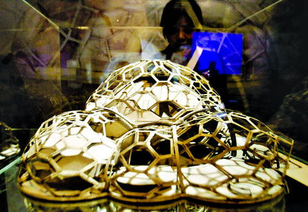 记者看见在设计模型上,该建筑的外形如同蜂巢,一共由电影院、酒吧、门廊等5只球形的“蜂巢”组成,其中4只小型蜂巢球体围绕在一只大型的蜂巢球体周围,而在该大型球体的顶端是一座空中餐厅,它距离黄浦江面80米,顾客可以一边用餐、一边欣赏周边的江景。该整体建筑将采用塑料等材料建成,其中包含历史、自然和科技多方面的内容,独具匠心。
