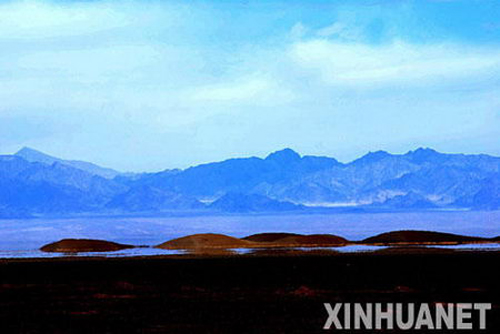 晴天丽日下的青海柴达木荒漠戈壁常常出现“海市蜃楼”奇观。戈壁滩上的沙丘在阳光和浮云的作用下不断变幻着颜色,周围“波光粼粼的湖水”中的倒影若隐若现、瞬息万变。