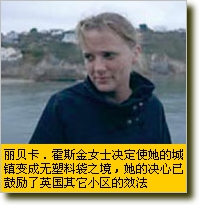 在英国德文郡的集市城镇莫德玻利(Modbury),有四十三位商家从今年5月1日起,主动停止提供塑料袋。其缘起是:一位替英国广播公司(BBC)拍摄野生动物的女摄影师丽贝卡.霍斯金女士(Ms. Rebecca Hosking),她从夏威夷拍片归来,当地塑料废弃物对海洋生物所造成的悲惨影响令她感伤落泪,她决定将自己居住的城镇变成一个无塑料袋之境,因此向所有商家播放她所拍摄的纪录片(注)。这些商家目前提供了一些环保替代品,包括销售可重复使用的环保袋,这些袋子是由具有公平交易及有机认证的再生棉制造;同时也以极低的价格提供消费者纸袋和可分解的玉米淀粉袋,此外还有黄麻袋可供选择。继莫德玻利镇的脚步后,许多英国当地小区,小至博维特雷西(Bovey Tracy),大至艾希特(Exeter),都开始实施类似的计划。