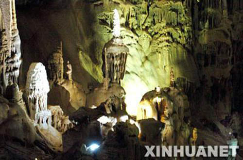 在世界长寿之乡广西巴马县,一个被命名为“长寿宫”的新发现溶洞经过初步开发后近日向游人开放。这个溶洞内的钟乳石约有30万年历史,现仍处于生长和发育期。按照专家论证,这个溶洞的卷曲石、鹅管石的形态、密度、规模、发育程度都是国内外罕见的地质奇观。