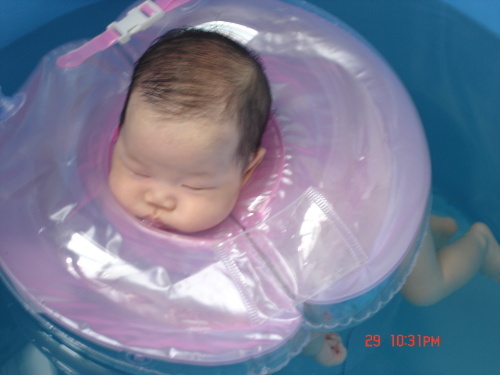 出生二十来天,妈妈就让我游泳了,游泳可真是舒服,有时觉的困了我还在水里小憩上一会儿。一个月不到我已经会对人微笑了,爸爸抱着我放在腿上,我看着他能笑着和他“哦哦啊啊”地交流了。书上说一般要到三个月才能发出啊哦等元音呢!到四十多天时有一天周阿姨给我做抚触我还发出了“阿-姨-”的声音呢,虽然大人们知道我是无意的,可还是乐得前俯后仰。