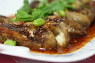 其实这个茄子很失败,我说的不是味道,一夫行走厨林这么多年了,味道怎么也错不了哪去,从朋友那拿回一个烤箱,于是兴奋的做烤茄子茄子去了皮放烤箱里,茄子上少抹点油,结果烤了一半烤箱卡的一声就蔫了。茄子还没烤透,但也不能仍它,于是上火上又煎了煎,这才给弄熟取一个小碗,里面放醋,少许酱油,盐,味精,白糖,香油,芝麻,老干妈辣椒酱,搅拌均匀,浇在茄子上,就好了,是烤还是煎,你自己决定吧。