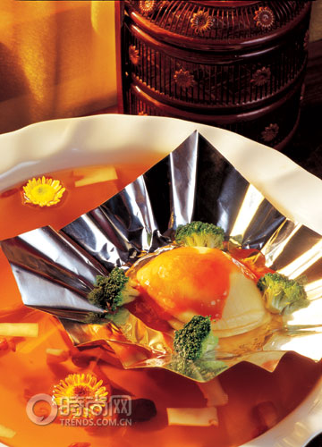 素食中有很多是豆制品,在这其中,招牌菜“天下有余”,卖相分明就是一盆鲜香诱人的水煮鱼。这道菜吃起来真的要比真正的水煮鱼的口感还要好。里面的原料虽然是大豆蛋白,却是两种不同的口感,其中一种名为“第一鱼”,口感鲜美嫩滑,另外一种名为“如意鱼”,口感筋道,有韧性。“第一鱼”的外表有一层黑色表皮,恰似鱼皮。个人认为“如意鱼”的口感更佳,因为其韧。地道的水煮鱼滋味并不是单纯由原料得来,重要的是正宗的油。油是用上好的十三香调料,红尖椒炒制成的,麻辣香醇,这才是味道正宗的来源,据说其中还夹杂了很多种中药,味道更加丰富。吃腻的水煮鱼,来这里尝尝“天下有余”,那种陌生而熟悉的口感又从心底泛起。