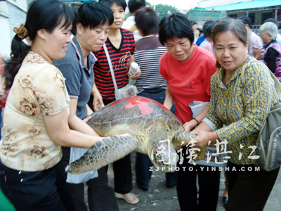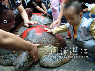 最受人们疼爱的是三只的大龟,像宝宝一样被老人家爱抚着,还与它私语好一阵的呢!随后大家同心协力地把大乌龟抬到船上驶到海中去放生,那一只只大乌龟和一条条生猛的花蟮,欢快地跃入大海,从此开始它们的“畅游”新生活。