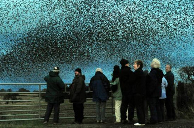 数百名观众目睹了这一黄昏奇景,大群星椋鸟变戏法的奇特飞行让他们看呆了。为了观看这一绝美景观,驾车行驶在英格兰和苏格兰之间的A74M主路上的人们不由地停下来。但是,雾般的这些鸟儿也给上班族和卡车司机带来麻烦,他们被要求停靠路边格外小心。