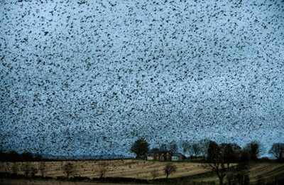 为了迷惑它们的天敌,这些小鸟一定是聚集一起,盘旋飞行,并发出叫声。它们的飞行速度超过每小时20英里,而且,很少发生碰撞。科学家称,星椋鸟令人惊讶的空间意识的秘密是为了保证聚集一起,每只鸟跟踪另外7只鸟。这种自然奇观只发生在冬天的几个月内。