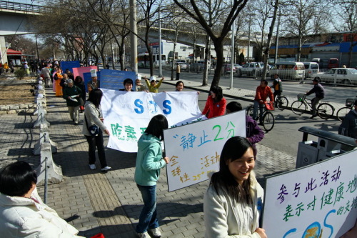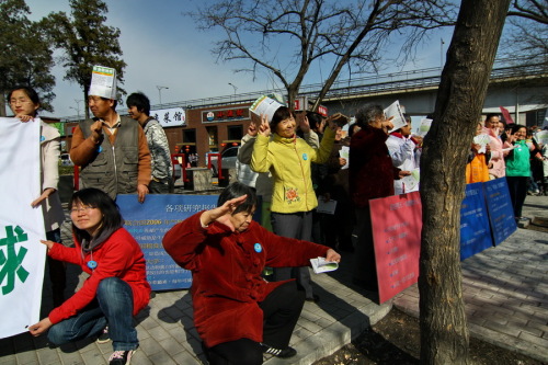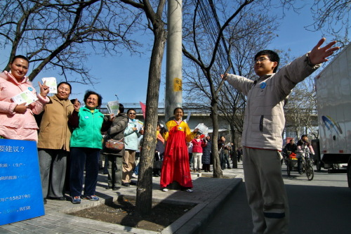 在活动的过程中,恰逢火车通过,许多过往行人都驻足与此,大家目光齐聚志愿者们,路过的行人也纷纷索要宣传资料,询问活动的内容和素食的意义,也有人表示要开始体验素食并且提出想学习如何自己在家中烹饪素菜。显示出很大的热情。素食志愿者在2分钟固定活动后齐声呼喊:“开始吃素,加入环保,拯救地球”,活动掀起了高潮。
