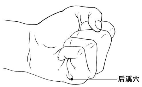 后溪穴怎么找呢?把手握成拳,在第5掌指关节后的远侧掌横纹头赤白肉际处即是(即把手握拳,掌指关节后横纹的尽头就是该穴)。如果你坐在电脑面前,可以把双手后溪穴的这个部位放在桌子沿上,用腕关节带动双手,轻松地来回滚动,即可达到刺激效果。在滚动当中,它会有一种轻微的酸痛。这个动作不需要有意识的去做,每天只用抽出三五分钟的时间来,随手动一下,这个简单的治颈肩腰椎病的方法,我把它叫作滚揉后溪穴。坚持下来则对颈椎、腰椎确实有着非常非常好的疗效,对保护视力也很好。以前工作繁忙时,我每天在电脑前的工作时间也有十一、二个小时,但多么多年来我的视力、颈椎都没有问题,靠的也正是这个方法。