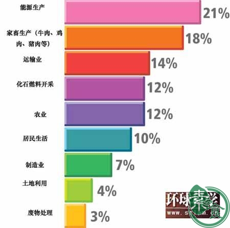 牛肉产生温室效应的最主要原因是,吸收二氧化碳的树木、草地和其他所念生植物的消失——这些土地改为种植饲料作物,且每年都要收割;其次,是因为动物排泄物和动物消化饲料时排放的甲烷。