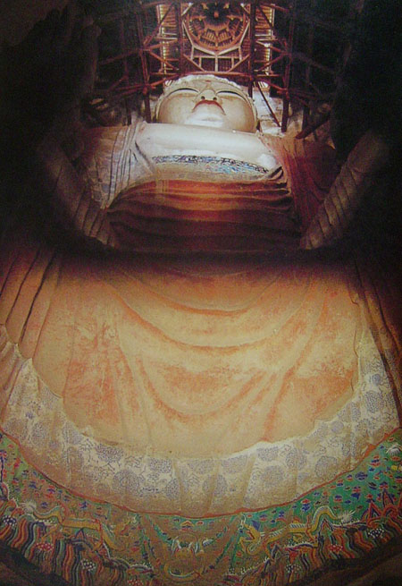 图37莫高窟第148窟 西壁佛床 涅槃像(局部) 盛唐(清重修)