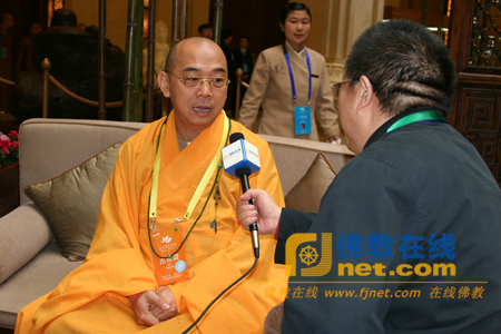 记者:非常感谢法师。我是从1995年开始做佛教的电子化和典籍化的,1996年开始创办佛教网站,做了十几年的传播,2007年我又创刊了《佛门资讯》。将来如果有机会的话,我希望能够更多地把您在国内外弘法的事迹,还有您的一些思想,在尽可能的情况下通过网络来提供给大众,也希望得到您在这方面的支持。