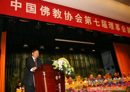 各位法师、各位朋友: 中国佛教协会召开七届三次理事会,会议的一个重要任务,就是为即将举行的“世界佛教论坛”,进行动员和准备。 在座的各位中佛协理事,都是首届世界佛教论坛的正式代表,对外而言也都是当然的主人。大家应该有这样的责任感和自豪感:在世界佛教面前,我就是中国佛教;在各国外宾面前,我就是中国主人! 论坛的举办,是一件大事、好事,但我们是第一次举办这样大规模的国际会议,经验不足,需要大家的支持与参与。只有充分整合各种社会资源,集中众人的智慧和力量,心往一处想,劲往一处使,群策群力,精心设计、善于协调、抓好落实,才有可能办好这件大事。请在座的各位始终给予论坛高度的关注,以主人翁的姿态参与其中。佛教讲因果,只要我们种下群策群力之因,就一定会结出功德圆满之果。 正当论坛的筹备工作进入倒计时的时候,中国佛教协会第七届三次理事会开得及时,开得必要。刚才一诚会长、圣辉副会长已就佛协的工作,做了很好的报告。我再占大家一点时间,专门就世界佛教论坛的筹办,讲三点意见,供大家参考: