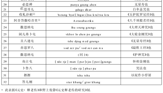 新君即位,例颁《珍珠诏书》,以示尊崇。帝师至京,复往受戒,皇后亦然,并且颁诏天下臣民齐受佛戒。法会(元称好事)名目之多,前所未有,仅《元史·释老传》具体罗列出名称的就有三十多种(见表一)。