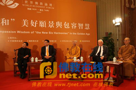 2009年3月29日下午,以盛世“新六和”美好愿景与包容智慧为主题的第二届世界佛教论坛之传承与弘扬分论坛在灵山梵宫举行,中国佛教学会副会长兼秘书长学诚法师、台湾法鼓佛教学院校长惠敏法师、著名文化学者余秋雨、香港凤凰卫视董事局主席、行政总裁刘长乐,比利时社会科学院院士、北京外国语大学客座教授、泰国国际佛教大学副校长魏查理,围绕着两届世界佛教论坛的主题之间的转承关系;佛教的僧团组合被引进到中国来以后,对中国人的精神生活和社会生活发生了哪些影响;如何正确的理解佛教所说的广结善缘等问题进行了交流与探讨。