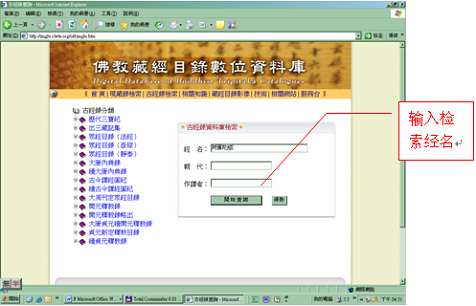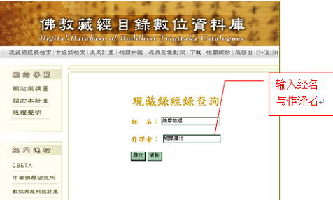 图二 现藏录经名检索页,读者可在经名框中输入欲查询的经名。