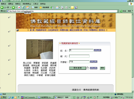 “数字经录数据库”的完成,堪称为佛教学界的一大贡献。学者已不需出门上图书馆、翻阅目录,轻易能从本数据库检索到某部经,找到佛典收录版本册页出处,及汉、藏、巴等相关经群对应,并同时连结全文在线阅读。其中“数字经录”的主要功能是多语言、多版本佛典强大效能的“经录数据库检索”。于此,仅依“现藏录”及古经录“两大类,简介经录数据库的检索功能: