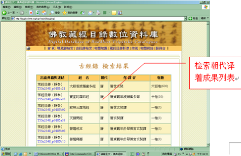 图十七:经名+朝代+作译者检索页,缩小范围合并查询经名、朝代、作译者