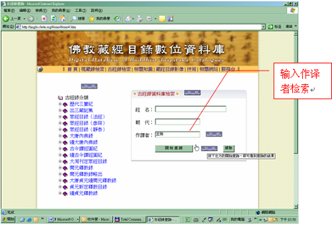 图四 现藏录作译者检索页,同样亦可检索作译者。