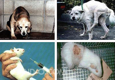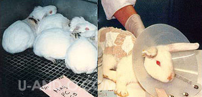美容产品商每推出新产品,都要找来大量白老鼠、白兔做实验品。别以为那就是每天早、晚在小白兔的面颊涂上一丁点的润肤霜这么简单!动物测试要小动物天天吃唇膏填肚子、重复不断在身上涂抹厚厚化学品,直至出现敏感、发炎、破皮溃烂等中毒反应,无论有多惨痛难耐,研究员只会眼巴巴观察牠们的反应,让它们活受苦,最后待实验完结便被杀死。每年便有上千万的动物,因为被抓去试验唇膏、洗头水和牙膏等护理产品而丧失生命。