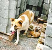 今年2月,居民们惊喜地发现,这只狗生下了3只小狗。太可爱了,3个毛绒绒的小动物,雪白的毛夹杂着几个黑点,温顺地躺在妈妈的怀抱中,几位老头老太十分热心,每天拿来家中吃剩的饭菜,有时还送来牛奶。在长到一个月大时,一只小狗被人领养抱走了。剩下的2个小生灵还在哺乳阶段。没想到,厄运昨天降临了。