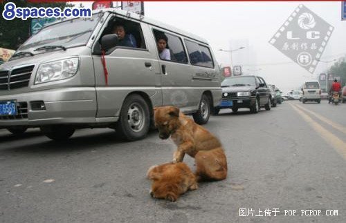7月24日上午10时许,在某市行政服务中心门前看到,在滚滚车流中,一只黄褐色的小狮子狗躺在斑马线南边,另一只同样颜色的狗不停地用两只前爪拨躺在地上的小狗,只见那只狗一会儿低头亲吻小狗,一会儿抬头仰望匆匆而过的人群和车辆,不时发出悲伤的呜鸣。