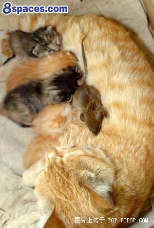 5、胸怀宽广 把老鼠与小猫养在一起的母猫