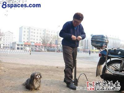 老人说,闹闹今年已经2岁多了,虽然它名字叫闹闹,但其实它一点也不闹人,而是非常乖巧听话。记者看到,老人修理自行车、摩托车等时,闹闹就乖乖地守在老人旁边。老人说,有时候两个甚至三个修车的人,赶到一起来修车,他忙碌得顾及不过来。客人有的等着着急,闹闹就跑到客人旁边,“汪汪”地叫,似乎在示意“稍等一下”。这时,客人们都会不自觉地逗闹闹,耐心地等待老人将车修好。当没有活,闲下来的时候,闹闹就撒欢逗老人开心,自己在地上打滚、然后跳到老人身上撒娇。