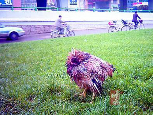 这只无头鸡重约两公斤。从早10时陈先生提着在现场所录的录像来到本报报料起,到记者中午12时离开,它都一直站在绿化带里。从陈先生提供的录像上看到,早上有三四位遛狗的市民路过此处,几条大狗走到鸡的身边时,看着这怪模怪样的鸡,闻到鸡身上的血腥味,都被吓得拖着主人绕开母鸡跑了。