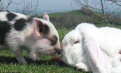 英国农场兔子与猪发展“亲密友谊”